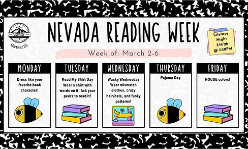March 2-6 - Nevada Reading Week/Spirit Week